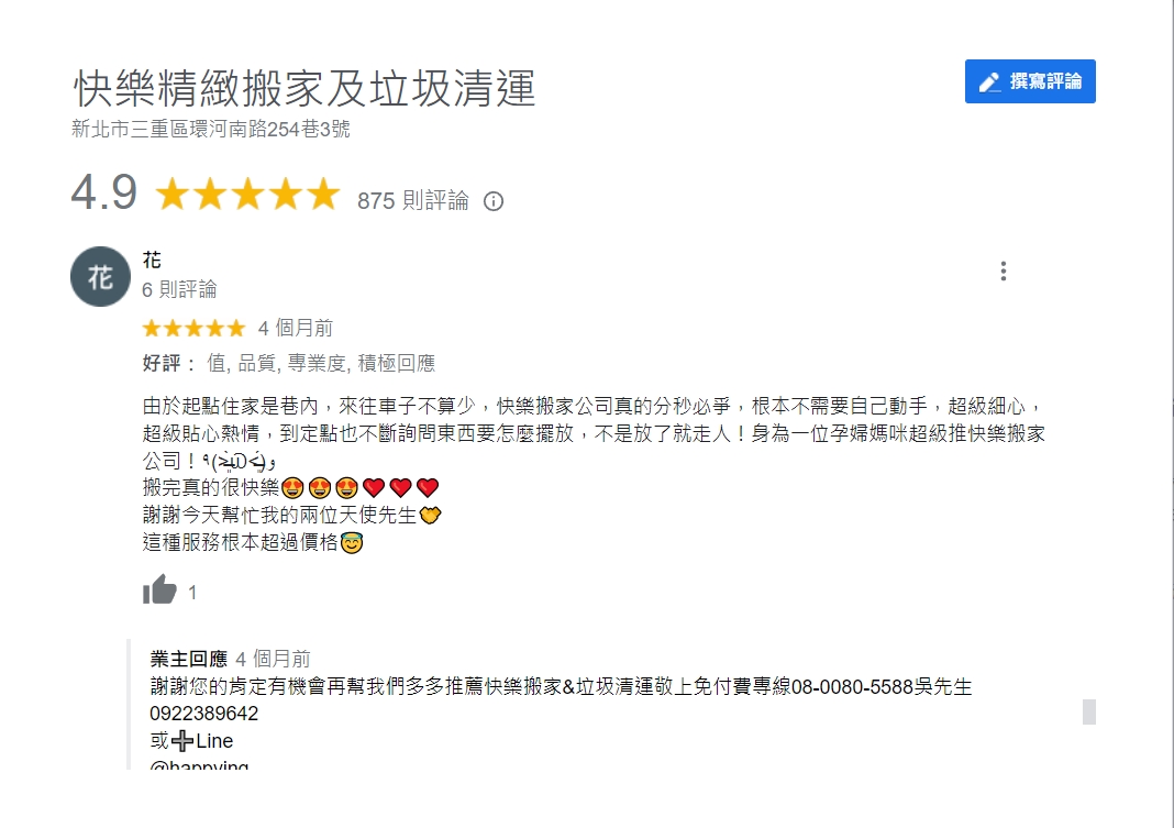 快樂搬家&廢棄物垃圾清運使每位快樂精緻搬家公司員工就像老闆一樣,專營自己的搬家事業讓員工更有向心力, 也因此降低了搬家人事成本,相對的搬家費用也更加的平價化。